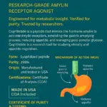 Cagrilintide is a long-acting amylin analog developed to study appetite regulation, delayed gastric emptying, and energy homeostasis. As an investigational peptide, it mimics the natural hormone amylin, co-secreted with insulin from pancreatic β-cells, and plays a critical role in postprandial glucose control and satiety signaling. Cagrilintide is often researched alone or in combination with GLP-1 analogs to investigate synergistic effects in weight regulation and metabolic syndromes.