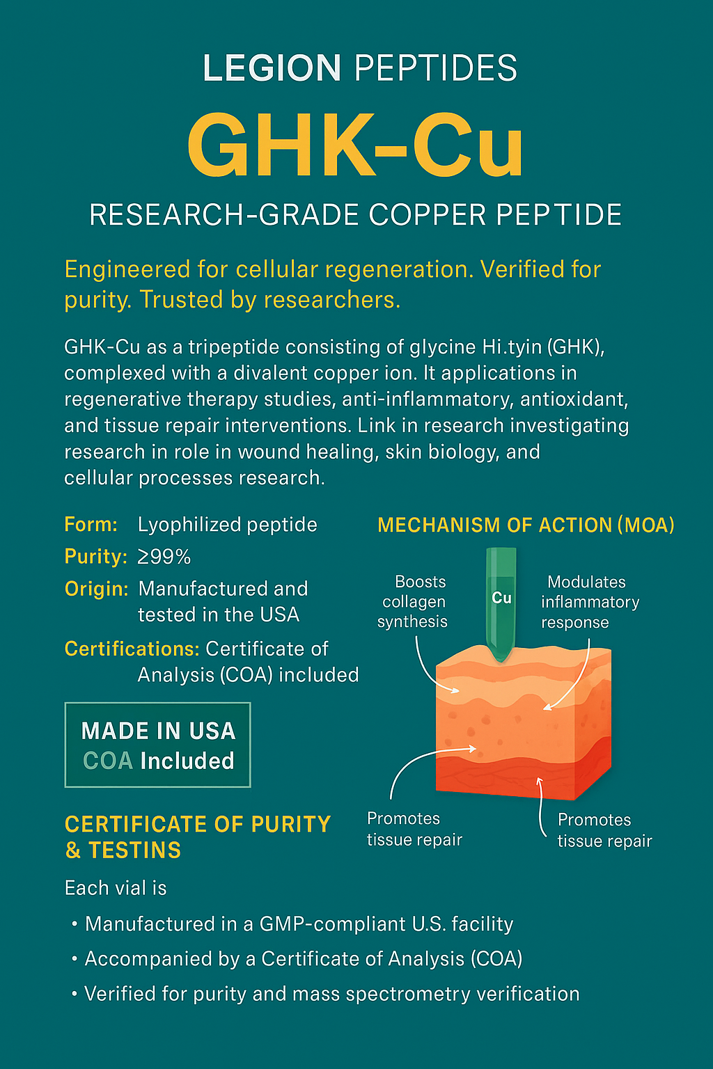 GHK-Cu (glycyl-L-histidyl-L-lysine copper) is a naturally occurring copper-binding tripeptide with significant biological activity. It plays a crucial role in tissue remodeling, wound healing, and skin regeneration. GHK-Cu is a focus of research into anti-aging, hair growth, anti-inflammatory effects, and cellular repair. Its ability to modulate gene expression and stimulate regenerative pathways makes it a powerful compound for studies in dermatology, cosmetology, and cellular biology.