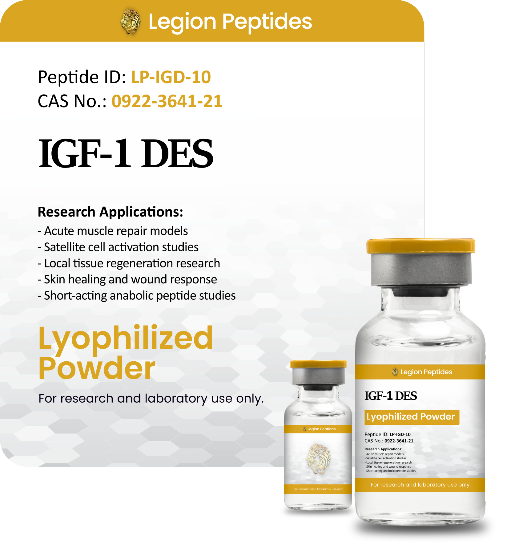 Products sold by Legion Peptides are intended for laboratory research and in vitro studies only. These products are not intended for use in the diagnosis, treatment, cure, or prevention of any disease and have not been evaluated by the FDA. By purchasing, you confirm that these products will be used solely for research purposes and in compliance with all applicable laws and regulations.