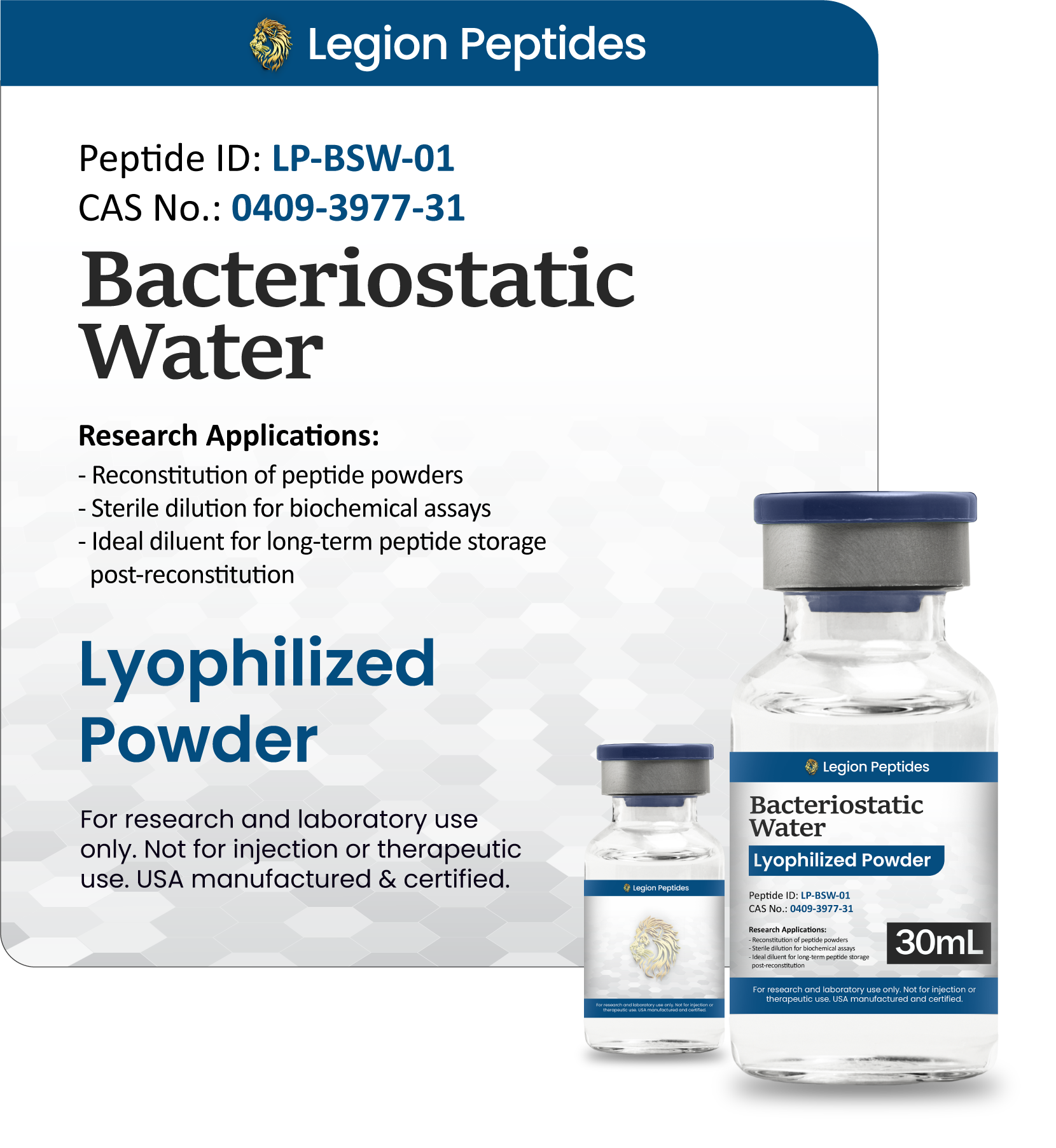 Bacteriostatic Water is a sterile, non-pyrogenic diluent containing 0.9% benzyl alcohol. It is widely used in