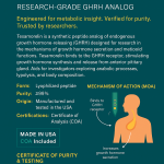 Tesamorelin is a synthetic analog of growth hormone-releasing hormone (GHRH) used in advanced research focused on metabolic and endocrine modulation. It stimulates the pituitary gland to produce and release endogenous growth hormone (GH), which in turn elevates IGF-1 levels. Tesamorelin is unique due to its high specificity for GHRH receptors and a relatively long half-life compared to natural GHRH, allowing for consistent GH pulsatility. It is widely studied for its role in fat metabolism, muscle preservation, and endocrine-related disorders.