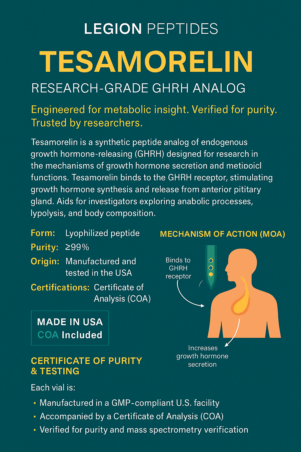 – Contents: 2mg lyophilized Tesamorelin peptide