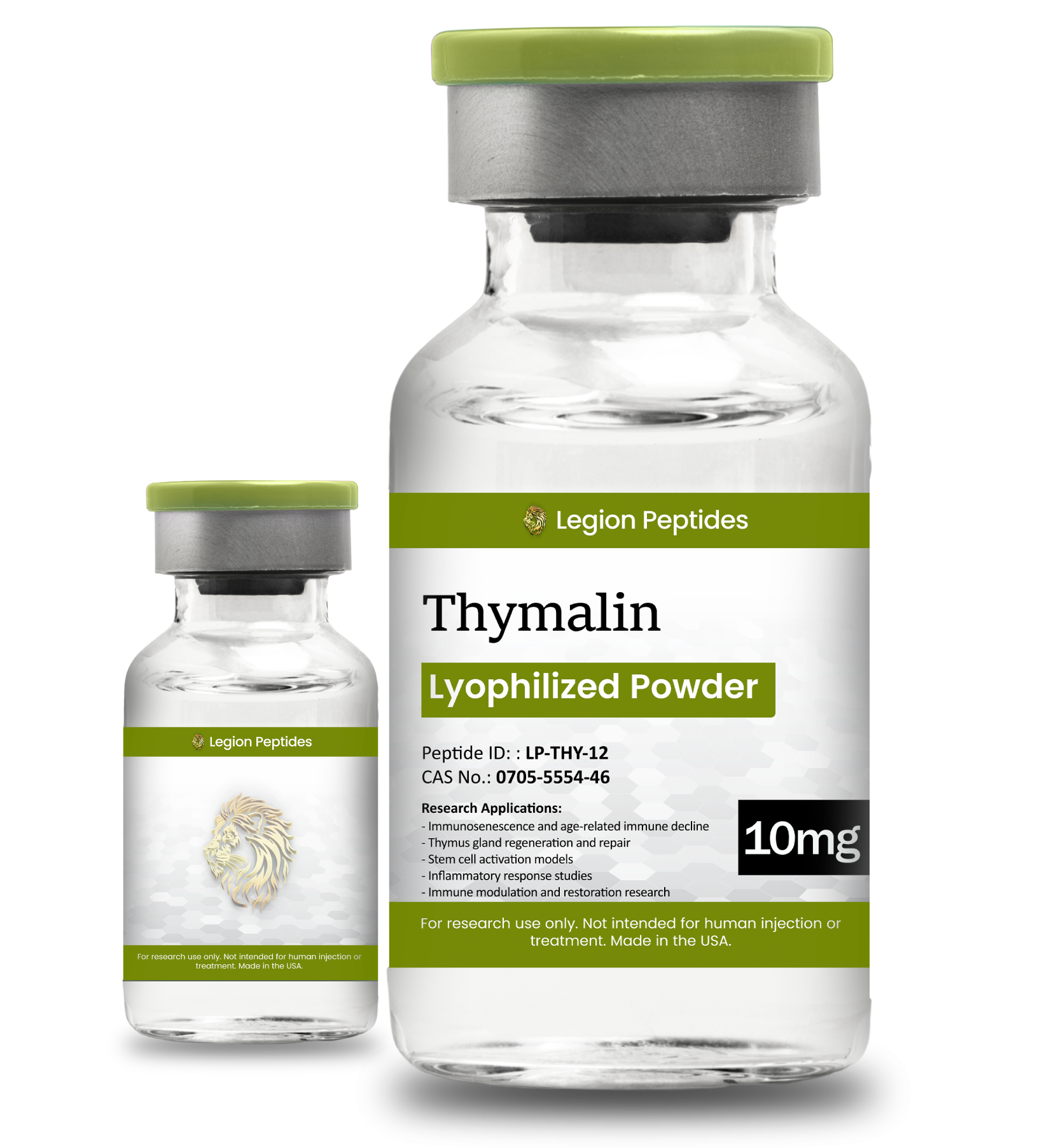 Thymalin is a thymic peptide complex derived from the thymus gland, consisting of short peptides that play a crucial role in immune modulation and restoration. It is studied for its regenerative properties, especially in aging models, where it may support immune system balance and cellular differentiation.