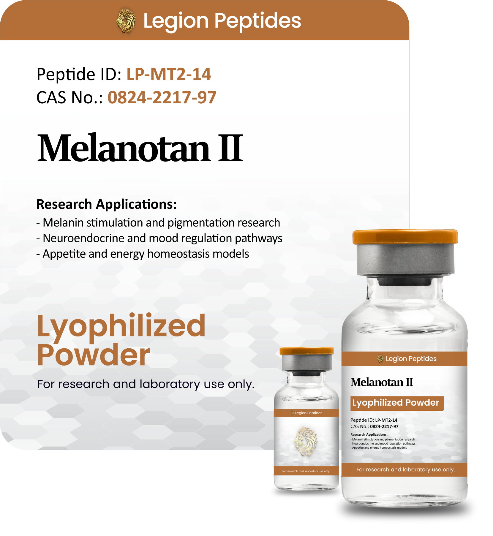 Melanotan II is a synthetic analog of the alpha-melanocyte-stimulating hormone (α-MSH), studied for its role in stimulating melanin production and influencing mood-related pathways. Originally developed for research into skin pigmentation, it has also shown potential in appetite suppression, sexual function, and mood regulation models.