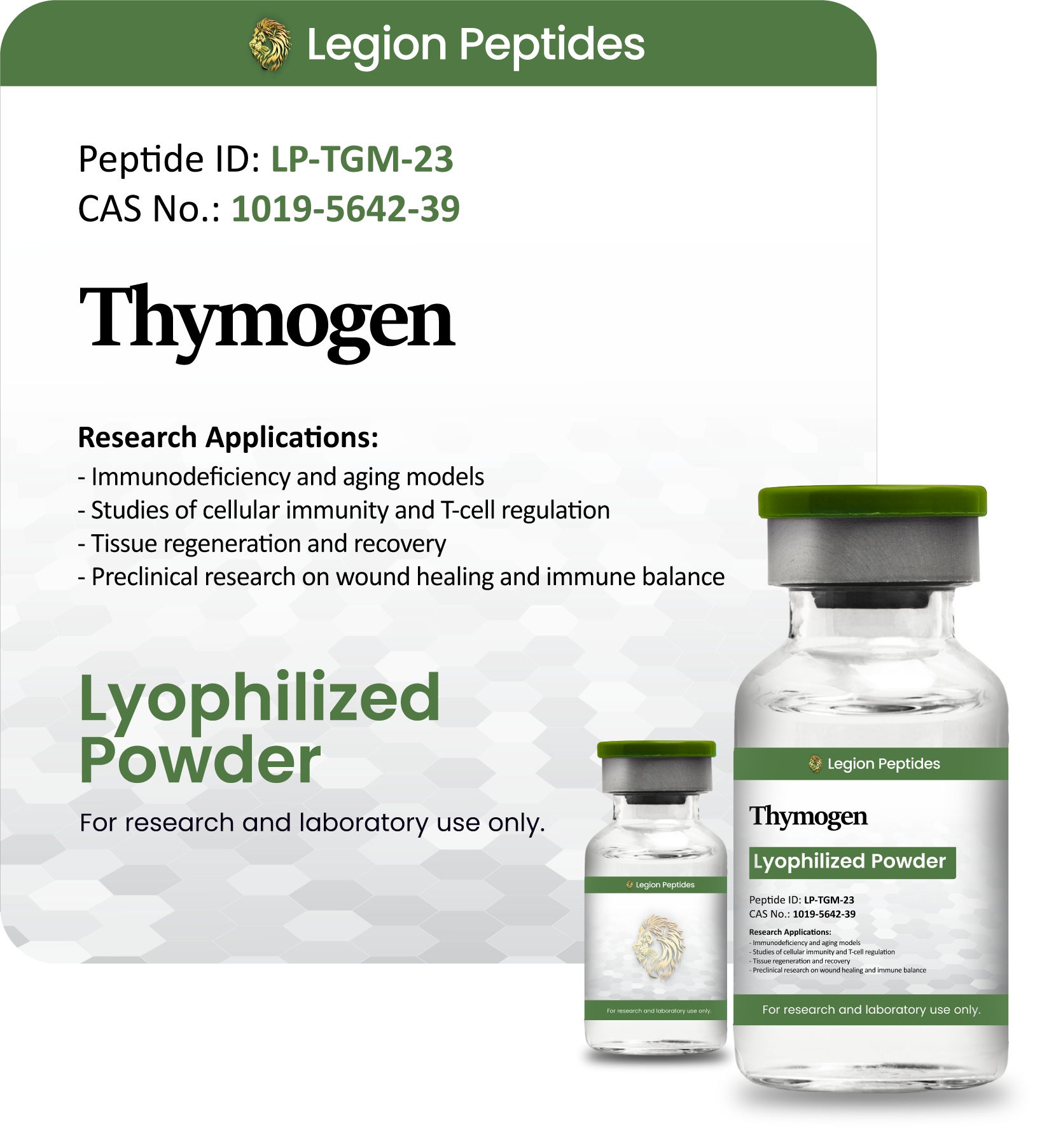 Thymalin is a thymic peptide complex derived from the thymus gland, consisting of short peptides that play a crucial role in immune modulation and restoration. It is studied for its regenerative properties, especially in aging models, where it may support immune system balance and cellular differentiation.